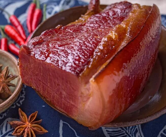 四川臘肉是一道美味可口的漢族名肴全國有名,屬于川菜系,熏好的臘肉,表里一致,煮熟切成片,透明發(fā)亮,色澤鮮艷,黃里透紅,吃起來味道醇香,肥不膩口,瘦不塞牙,不僅風味獨特,而且具有開胃、去寒、消食等功能。臘肉從鮮肉加工、制作到存放,肉質(zhì)不變,長期保持香味,還有久放不壞的特點。此肉因系柏枝熏制,故夏季蚊蠅不爬,經(jīng)三伏而不變質(zhì),成為別具一格的地方風味食品。